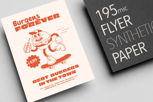 We provide you with high quality flyers printed on to Synthetic 195mic paper. Our flyers are available in both single and double sided format.